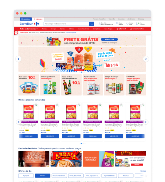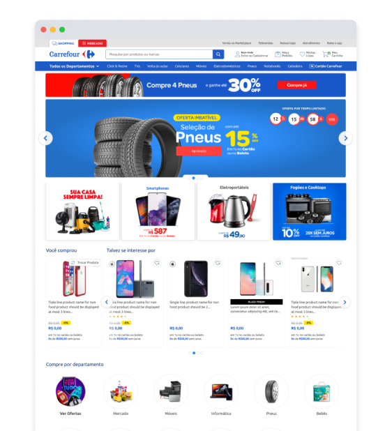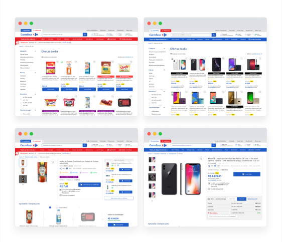 - Redesign de todo site Carrefour.com.br, incluindo os contextos alimentar e não alimentar;