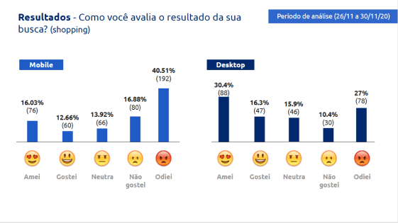 Pesquisa quantitativa aplicada para medir a percepção dos usuários em relação à qualidade, relevância e utilidade dos resultados de busca, comparando comportamentos e avaliações entre mobile e desktop.
