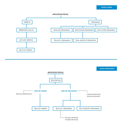 Fluxogramas navegacionais foram criados para compressão da profundidade e facilidade de navegação de ambas aplicações: